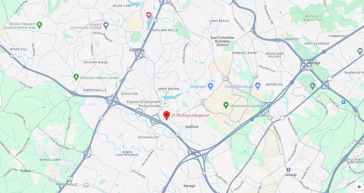 A1 Roofing’s Kanga Roof is a Fully Licensed and Insured, Family Owned Columbia Roofing Contractor (License MD #85692, D.C. #420318000448, VA #2705158457 serving Columbia and surrounding areas.