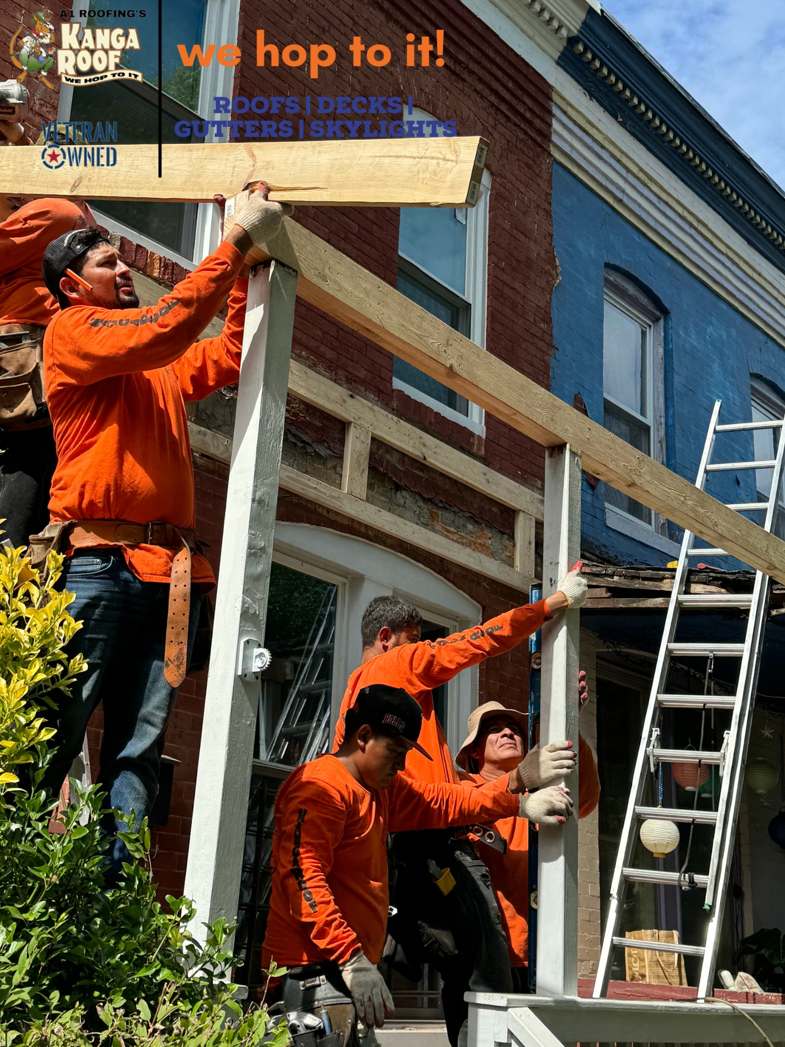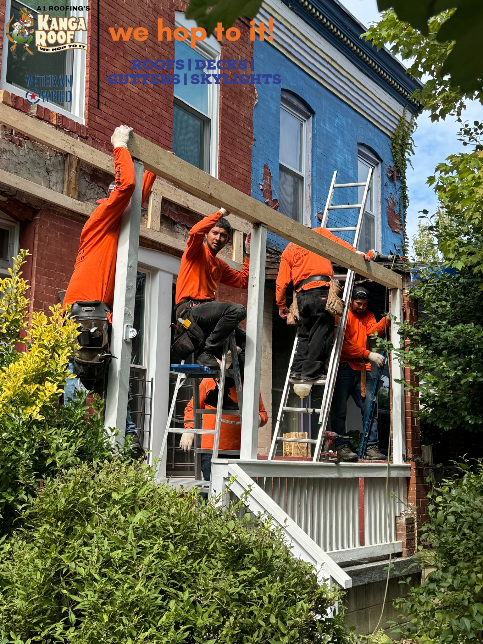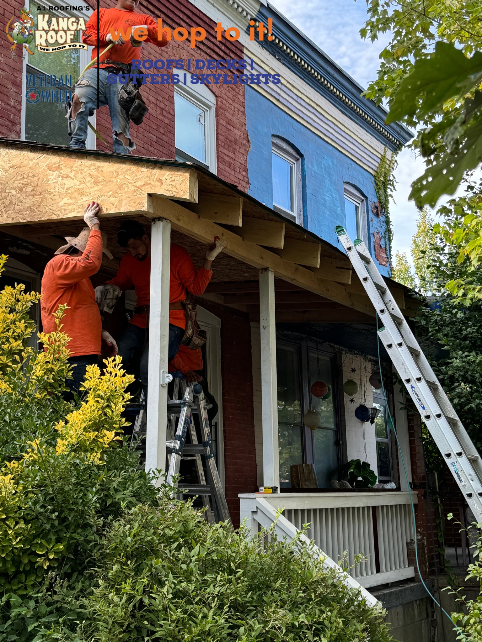 Hey, check out our latest roofing job! The team at Kanga Roof was tasked with repairing and replacing the front porch roof for a two-story residential brick house. The project involved structural woodwork, the installation of new roofing materials, and the addition of new flashing to ensure a secure and weatherproof finish. The work was completed professionally by a team of skilled roofers, ensuring quality craftsmanship.