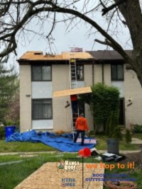 Diving deep into a meticulous roof repair in Columbia Maryland, our skilled team is at work on this charming residential building, replacing damaged plywood and installing new insulation to fortify the structure. These images showcase the step-by-step diligence—from stripping down old, worn-out materials to preparing the roof for new shingles. Our focus is on precision and sustainability, ensuring each segment is perfectly aligned and secured.
